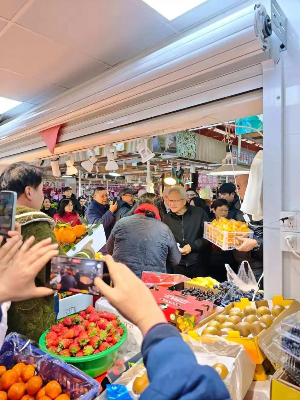 今日,大量网友拍到黄仁勋现身陆家嘴街道乳山路锦德菜市场,体验上海市井风俗,看起来挺平易近人。