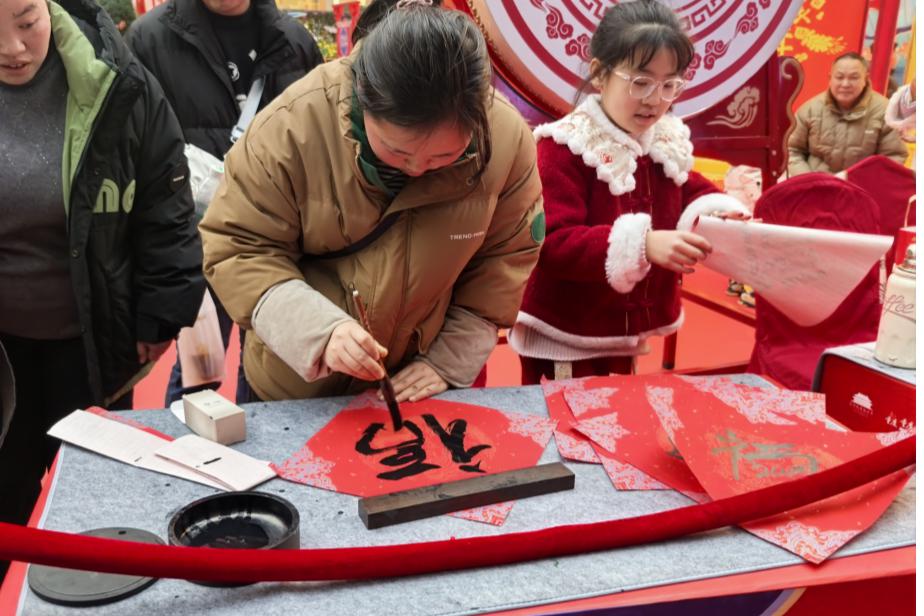 除了单纯的售卖外,现场还设置了多种传统文化互动体验,并特别邀请小朋友们担任志愿者。在写 " 福 " 字活动中,小志愿者们手握毛笔,在红纸上一笔一画认真书写福字,翰墨飘香间传递着新春的美好期许。" 看着孩子对书法文化这么感兴趣,特别欣慰,这样的活动非常有意义,能很好地弘扬传统文化。" 家长陈女士感慨道。