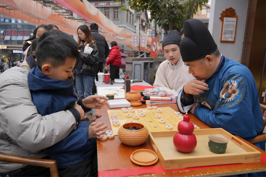 十八梯景区内 npc 与游客进行下象棋互动(央广网发 周长江 摄)