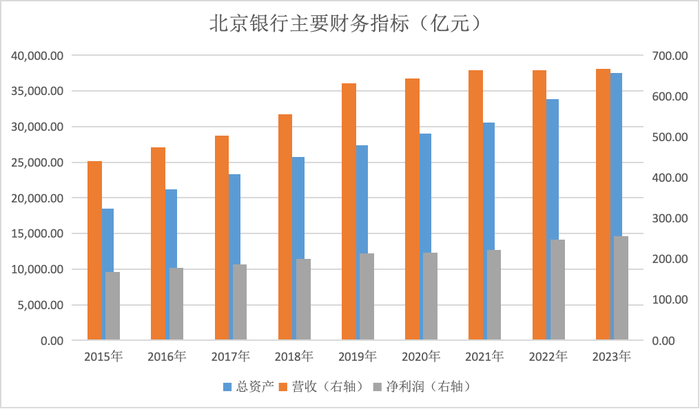 接任行长后,杨书剑继续带领北京银行稳健发展。财报数据显示,2023年末北京银行总资产3.75万亿,继续位居城商行首位,连续多年被监管部门评为系统重要性银行。不过,2022年以来江苏银行营收、净利润已超越北京银行。