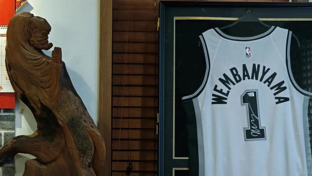 延安将文班赠送的球衣,放在了办公室里。東昇 摄