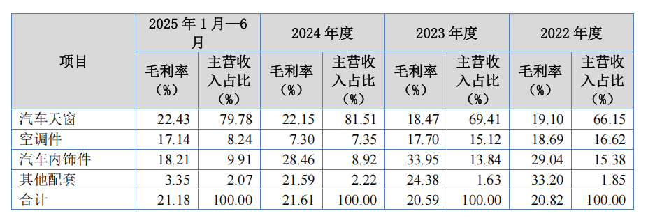 天运股份汽车天窗总成平均售价从2022年的1252.55元/套降至2025年上半年的939.17元/套,累计降幅达25%。降价趋势虽然符合行业惯例,但也反映出公司在价格谈判中的被动地位。尽管公司通过供应链纵向延伸(如自制玻璃包边、导轨等)抵消了部分降价压力,但在单一客户占据绝对主导的情况下,未来降价空间还能有多大?