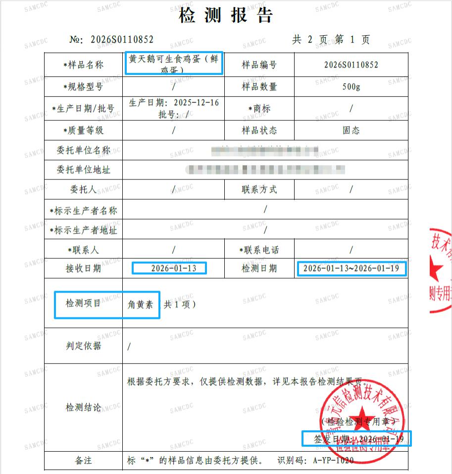 该负责人透露,团队于今年 1 月 13 日开始委托青岛元信出具检测报告,样品包括胖东来 10 款鸡蛋和山姆的蛋博士。" 数据结果都经过咱们实验室确证过。第三方机构出具的结果真实可靠,确定有人工色素角黄素。" 他强调,送检时间在该机构被通报批评之后,且所有鸡蛋的检测过程与通报所述事件无关。