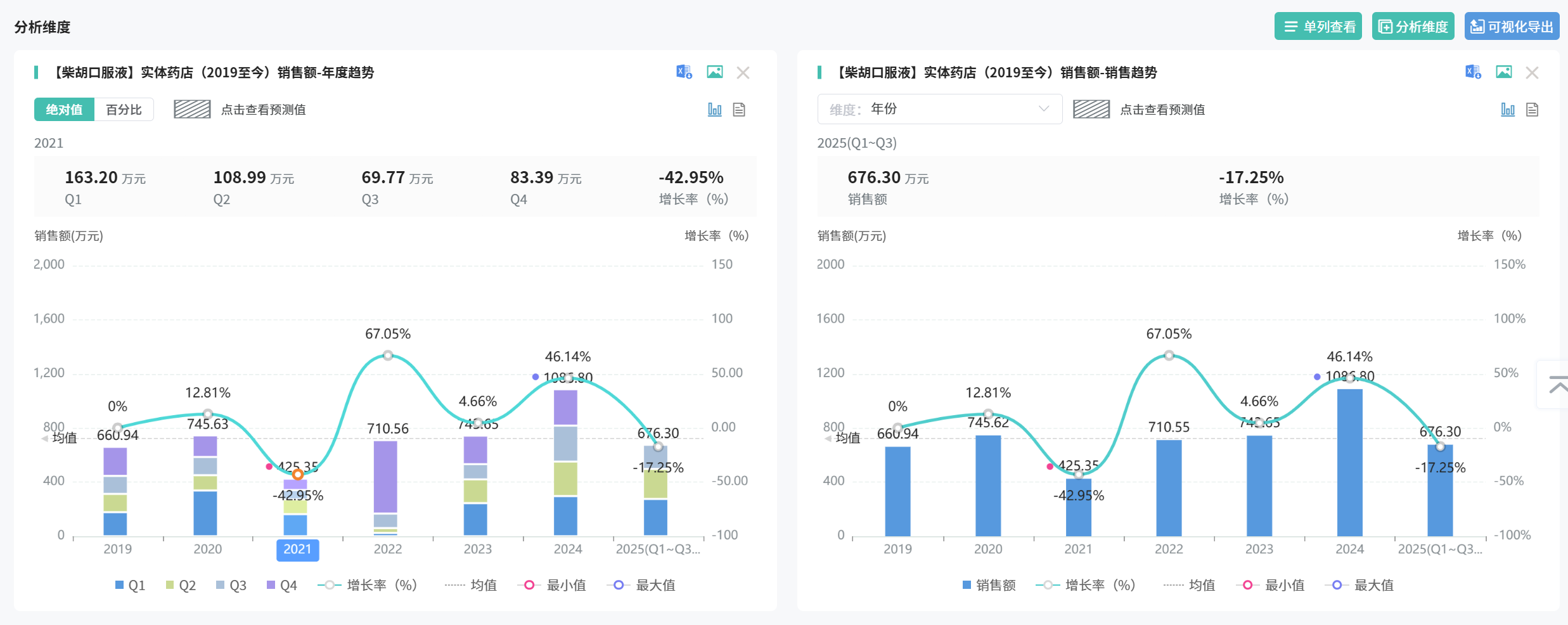 柴胡口服液也是国内药房常见的“感冒类”中成药。据摩熵医药数据,2019年至2025年前三季度,柴胡口服液在实体药店销售总额合计约5050.21万元。