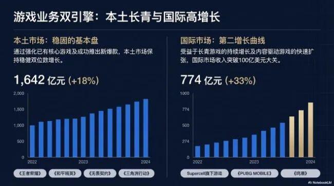 财报里非常亮眼的一组数据:腾讯海外游戏收入,首次突破 100 亿美元大关,同比增长高达 33%。这说明什么?两点,第一,腾讯游戏对全球市场的深耕,收获越来越大了。二是,通过,全球化不再是口号,而是实实在在的收入增量。