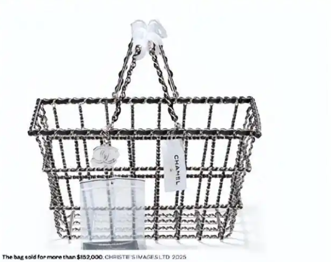 去年12月份,一款造型酷似购物篮的香奈儿手提包在拍卖会上以15.24万美元(约合人民币107.4万元)的价格售出,打破了该品牌的拍卖纪录。这款银黑色羊皮购物篮包是2014年的秀场款。