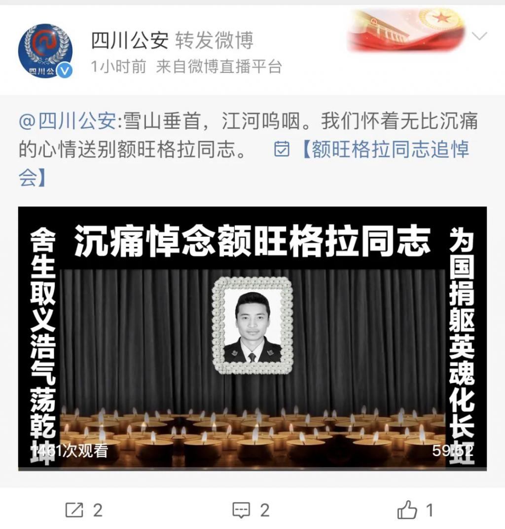 民警额旺格拉搜捕逃犯时壮烈牺牲,年仅37岁,今天上午举行送别仪式;抓捕视频公布