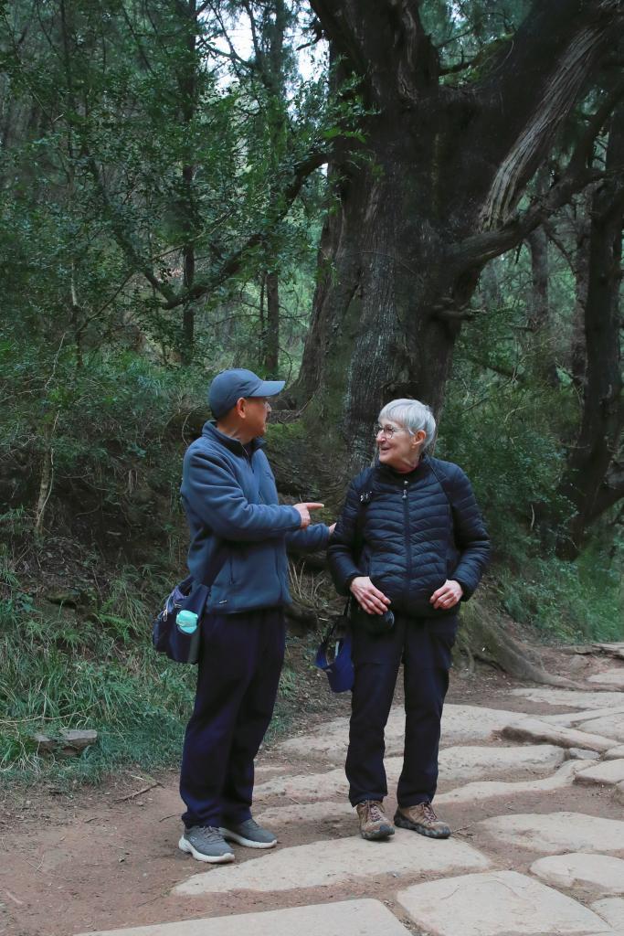 古树见证下,老朋友久别重逢,新故事仍在续写。最近几年,贾和普每年都会带来十几位对蜀道文化感兴趣的朋友同走蜀道。她一路走,一路如数家珍,娓娓道来。" 我们走的拦马墙路段,修建于 2300 年前。" 她指着路旁的矮石墙说," 古时有很多马匹走过,为了防止马跌落,在转弯的地方垒了矮石墙。"