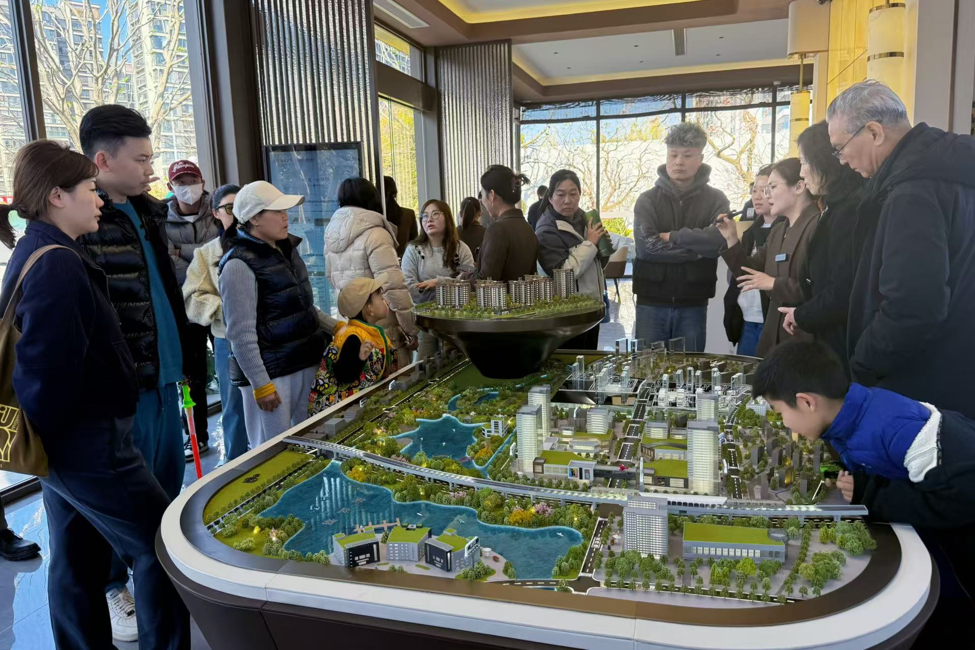 “我们就住在这附近,为了孩子上学打算置换一套更合适的房子。”建发·云湖玥样板间内,一位意向购房者向界面新闻记者表示。全家齐上阵的置业场景,让整个售楼处人声鼎沸。