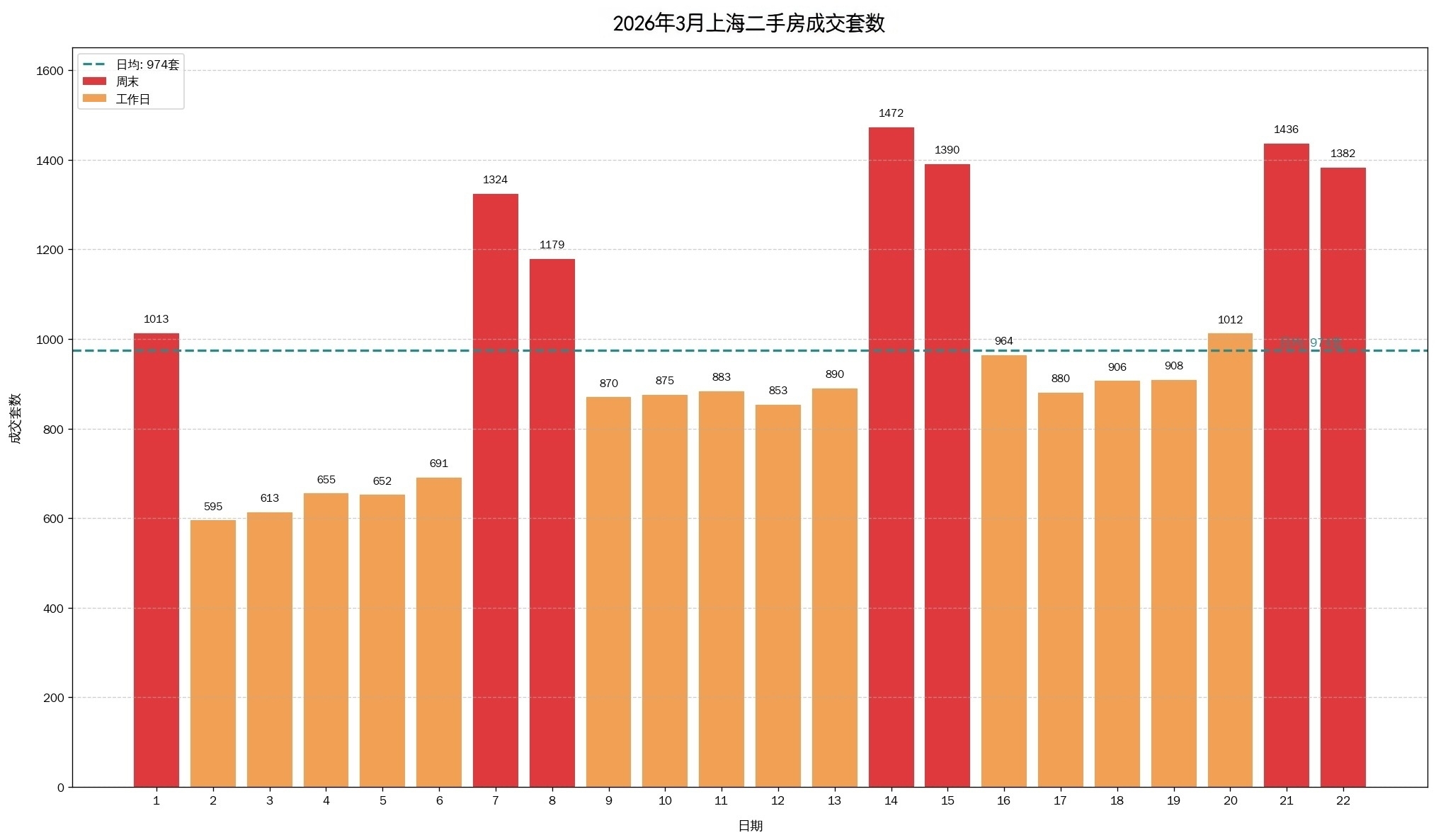 截至3月22日,上海二手房成交量已飙至21443套,全月冲刺3万套大关基本无悬念,这一数据大幅刷新往年同期纪录。