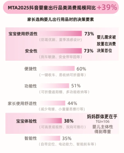 从横向来看,场景化与智能化正不断拓展母婴消费的边界。在场景化方面,新一代父母愈发注重“场景幸福感”。例如,出行场景中,儿童舒适性与高景观体验则成为关键考量。而在智能化维度上,超过半数的Z世代妈妈表示更倾向于使用智能母婴设备。可以说,孩子“少”了,爱却更“智能”了——这正是当下年轻父母育儿方式的真实写照。