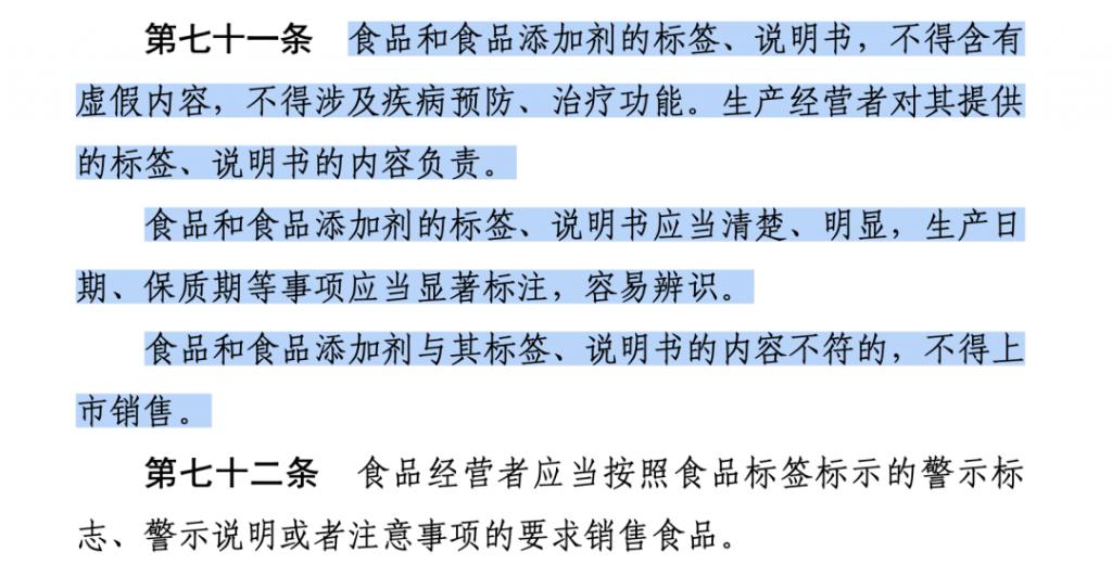 根据《中华人民共和国食品安全法》第七十一条,食品和食品添加剂的标签、说明书不得含有虚假内容,生产经营者对其提供的标签、说明书的内容负责,食品和食品添加剂与其标签、说明书的内容不符的,不得上市销售。