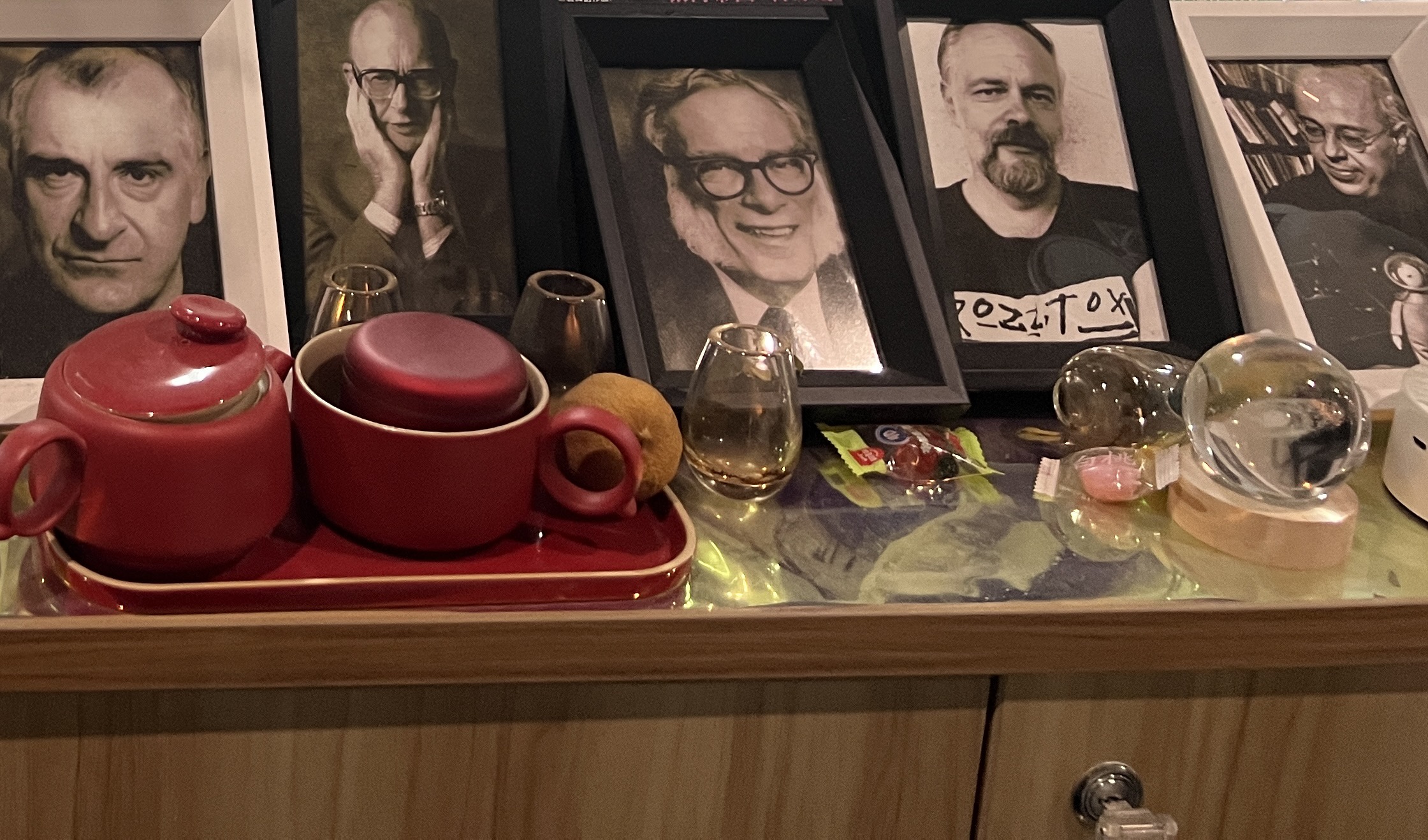 还有一个出版社,所有工位都给编了号码,螺丝钉、流程化的感觉很强烈。影片有一段拍到了盘点好多大作家的立牌,这也是真实的,编辑的心思很有意思,他们会在这些死去作者的照片前放蜡烛,天天来拜一拜,拜托作者的书能大卖。他们做着很前沿的事,但又生活在一个流水线的环境里,他们要动用很大能量在工作上,其他时间就是待机状态,处处有很大反差。