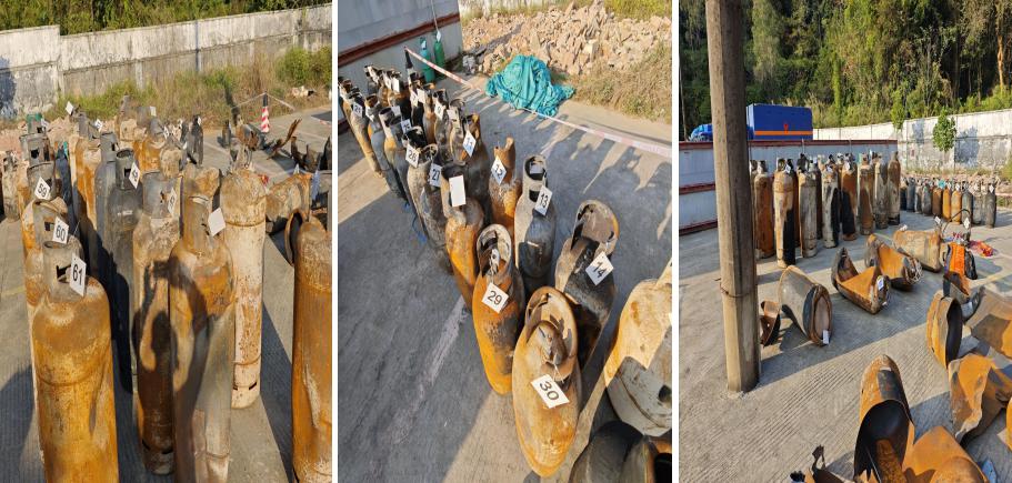 从事故现场收集的气瓶