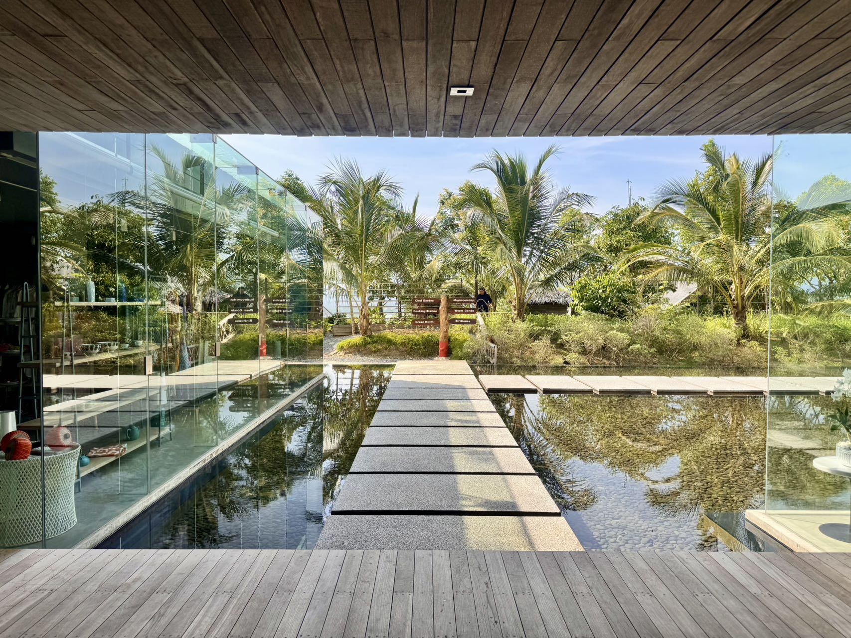 Jean-Michel Gathy擅长利用“水”增加景观的戏剧感,他曾说:“创造风景的最好方法就是水。”这一理念在度假村体现得淋漓尽致,长达百米的无边泳池三面直面雅木角海景,池水与安达曼海融为一体,即便在水中嬉戏,抬眼也能尽收山海景色。