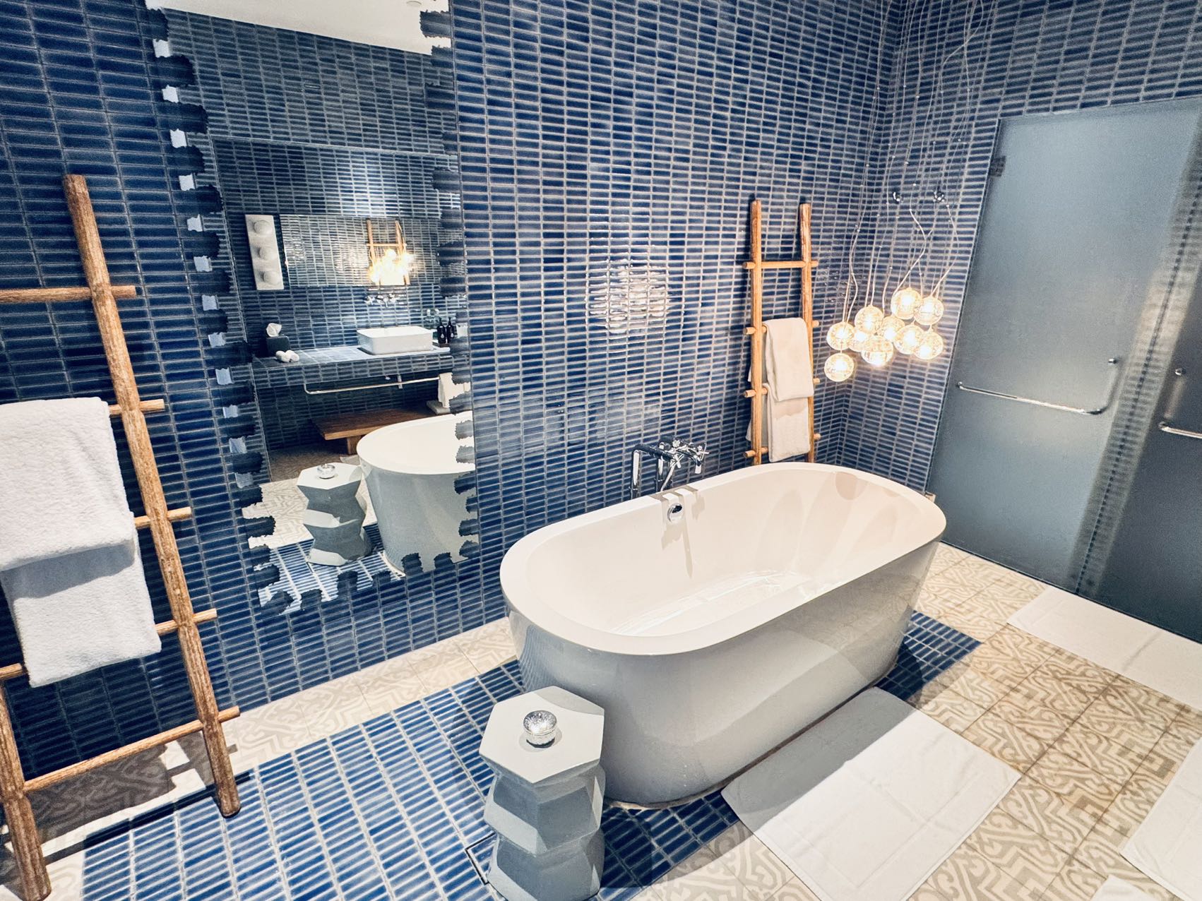 室内设计由Paola Navone操刀,她以安达曼海水为主色调,利用大片蓝色与其遥相呼应,搭配焦糖橘色点缀,灵感源自本地佛教僧人所穿的僧衣。房间的每处细节都在回应“如家般舒适”,大块柔软的沙发可供休憩,适合家人围坐畅谈的餐桌……