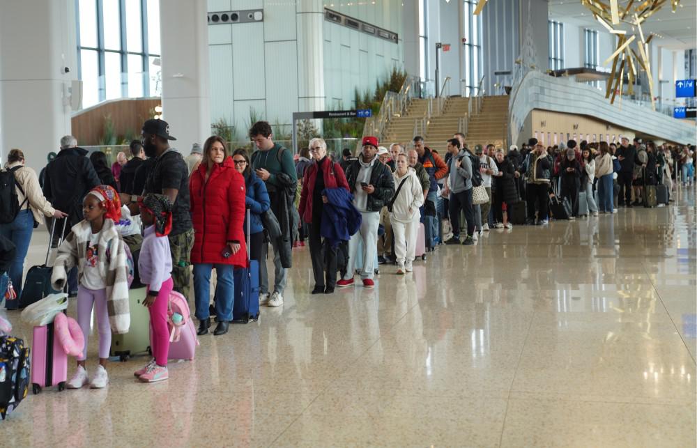 由于国土安全部 " 停摆 " 持续,负责机场安检的员工已数周领不到工资,请假甚至辞职的人数激增,人手短缺造成机场混乱局面日益严重,全美各地机场出现了严重的安检排队时间长和航班延误。