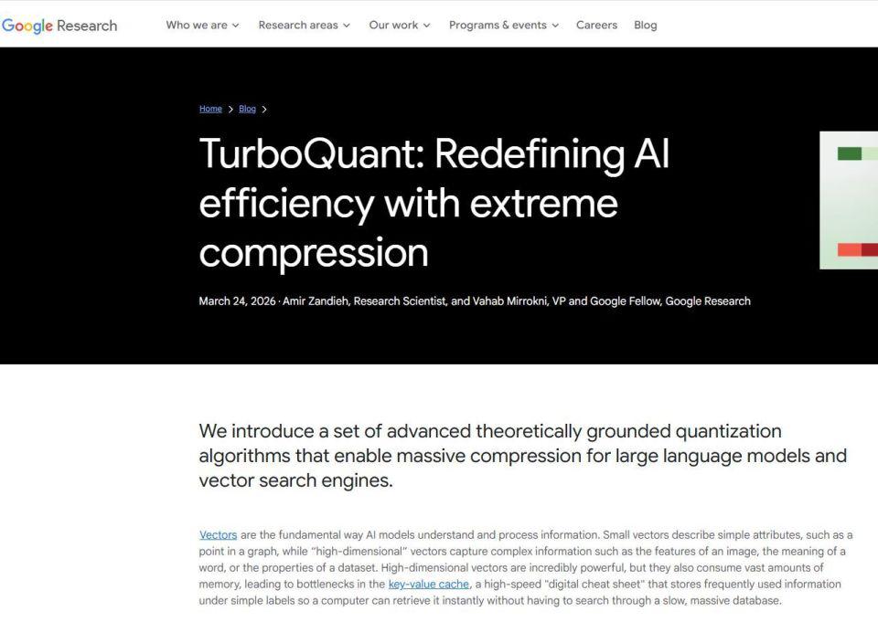 3 月 26 日,谷歌研究院(Google Research)的一篇论文震动全球存储芯片市场,引发美国和韩国巨头超 900 亿美元市值蒸发。