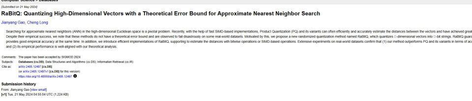 RaBitQ 是高健扬在新加坡南洋理工大学读博期间的主要工作,龙程则是他的博士生导师。