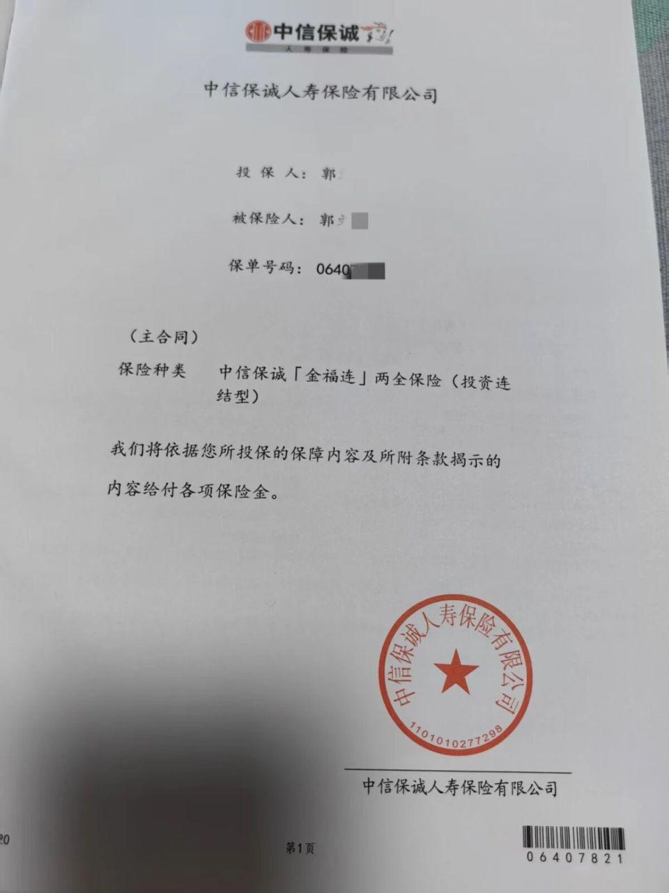 郭女士表示,春节前,中信银行、中信保诚及涉事销售人员已与她家达成口头协议,对方当面承诺:赔付本金损失的 80%,银行额外支付三年节日补偿,销售人员个人再赔偿 2000 元。年前最后一天,双方约定年后签署协议,可年后对方却又不认。目前银行称正在与中信保诚沟通,赔付主要卡在中信保诚签批环节。