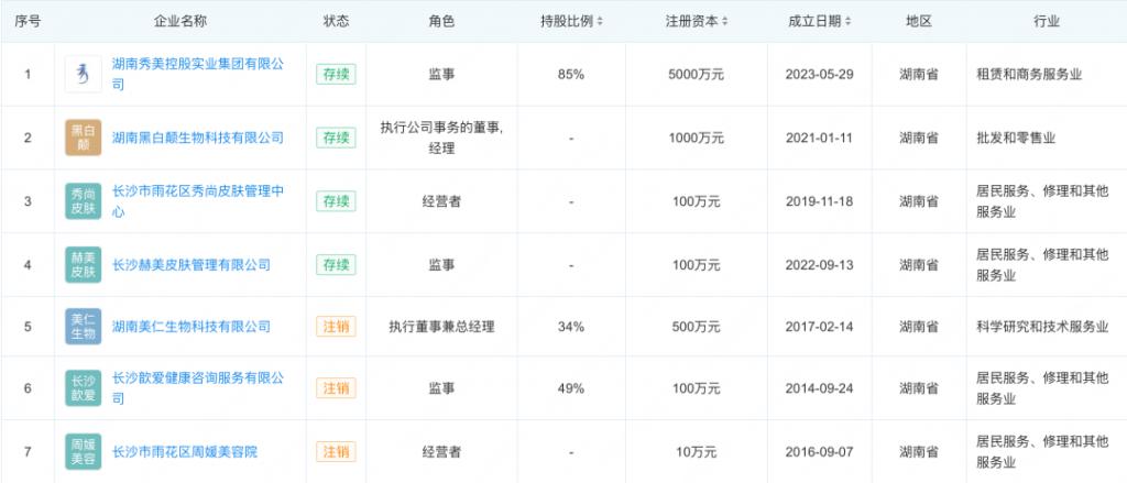除此之外,天眼查显示,周媛名下关联 7 家企业,其中 4 家为存续状态,业务范围涵盖健康咨询、养老保健、医美、医疗器械销售以及成人情趣用品制造等。公开报道显示,截至主账号被封前,其线上课程累计收入已超过 2400 万元。