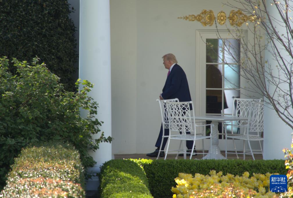 4 月 10 日,美国总统特朗普准备乘直升机离开华盛顿白宫。新华社发(李源清摄)