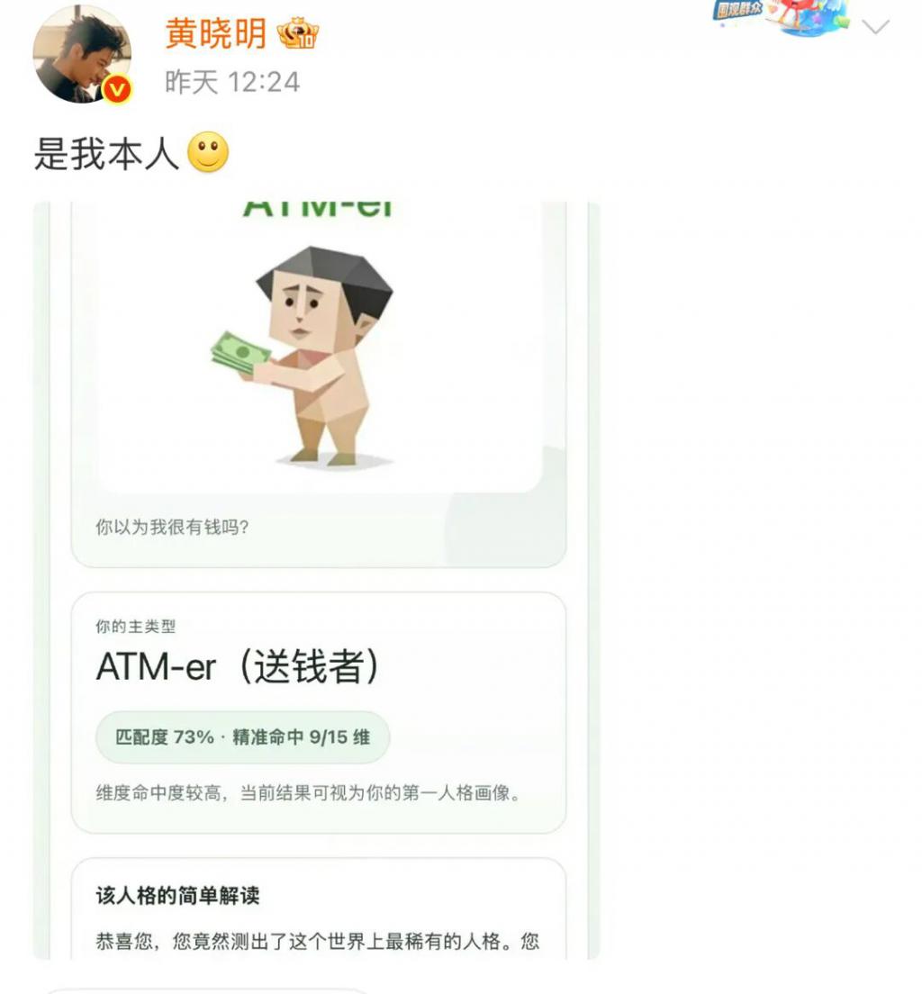 黄晓明等明星分享自己的 SBTI 测试结果