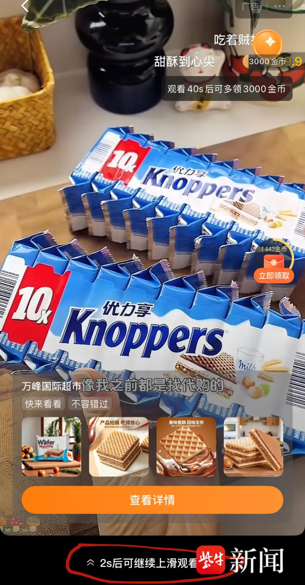 " 这哪是看剧,简直是‘渡劫’。" 家住南京的陈先生苦笑着向记者展示家中囤积的一堆 " 破烂 ":号称工厂直销的吉列剃须刀,到手发现包装盒上写着 " 吉利 ",外形虽与吉列相似,但刀片和刀把上均无吉列商标。经咨询宝洁公司客服确认," 吉利 " 实为仿冒品;广告推销的是德国 Knoppers 威化饼干,寄来的却是 "wáfer" 威化饼干,两者品名却不同,前者按条销售,后者为散装称重,完全是 " 挂羊头卖狗肉 ",由于无法考证产品质量,最终无人敢吃。此外,他还购买了多款号称能暴汗的减脂健身器材,如健腹轮、减脂筋膜环、健腹按摩仪,实际效果甚微,如今均已沦为家中 " 沉睡的垃圾 "。