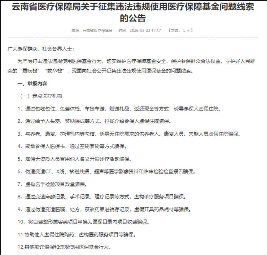 各地公开征集违法违规使用医保基金线索最高奖励20万元