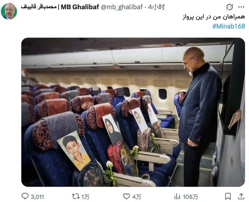在巴战机护航下,10 日下午,卡利巴夫带着伊朗遇难儿童的相片和书包来到伊斯兰堡。此次伊朗谈判代表团命名为 " 米纳卜 168",即伊朗米纳卜小学遭袭遇难的 168 名儿童——这表明伊朗方面占据道义高地,代表着近六周来遭受轰炸之苦的本国人民前来谈判。