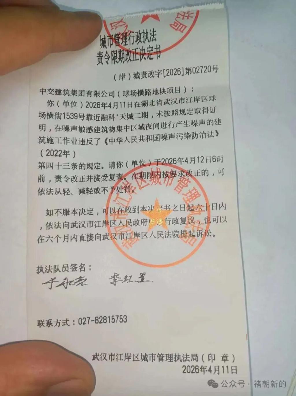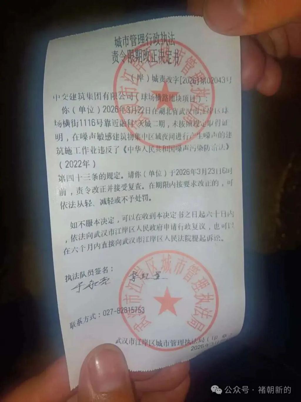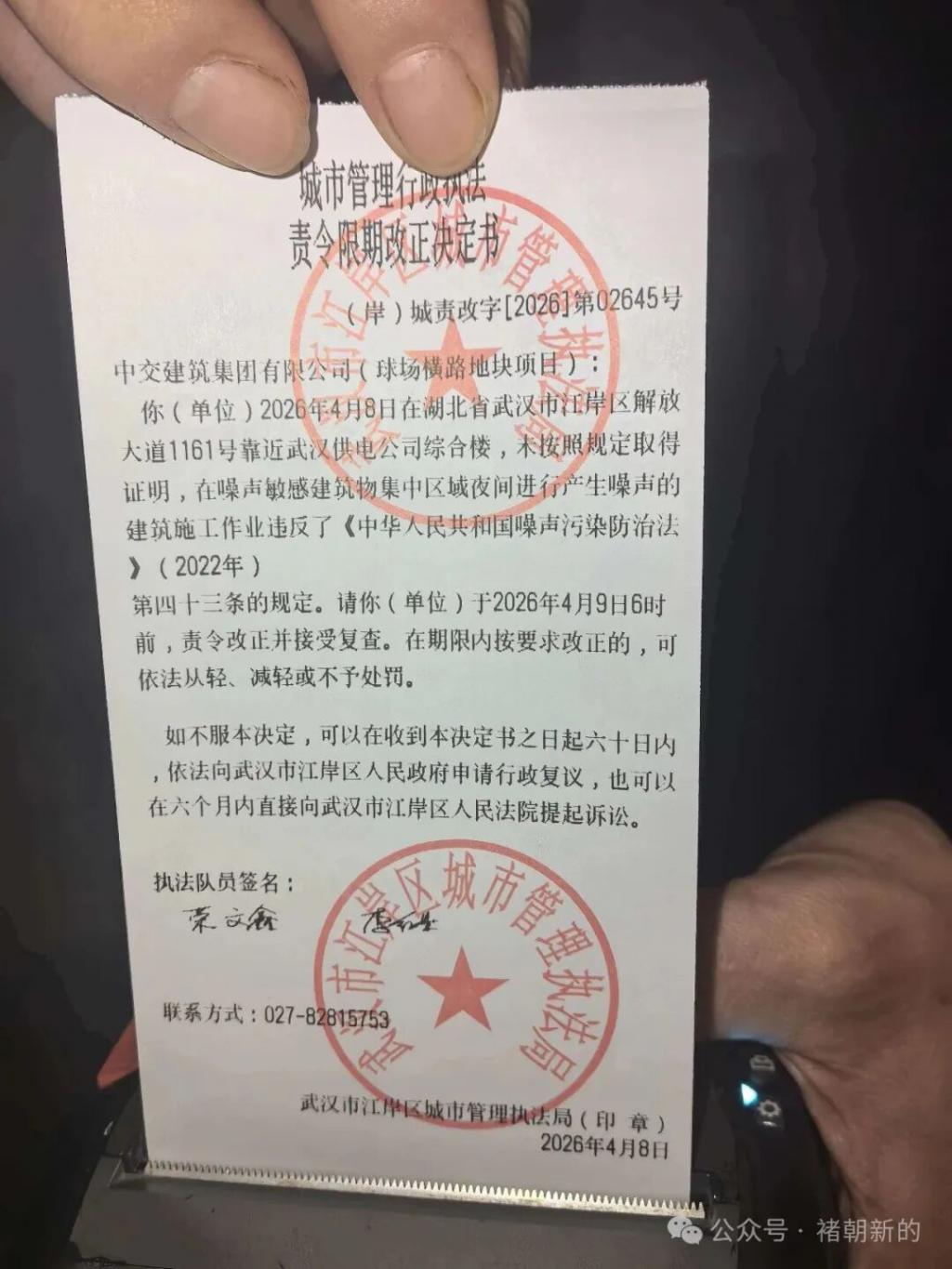 事情是这样的,武汉市民相先生所在的小区长期深夜遭受附近工地噪音扰民,离谱的是,当地城管 8 次接到投诉去执法,且每次都向工地下发了执法责令限期改正决定书,施工方却置若罔闻继续深夜扰民,丝毫不把城管执法放在眼里。