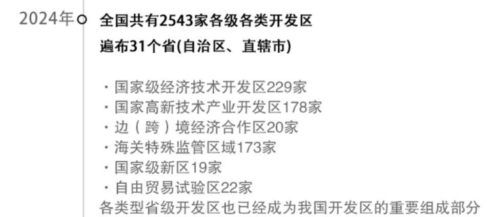数据显示,2024 年国家级经济技术开发区为 232 个,国家高新区为 179 家。