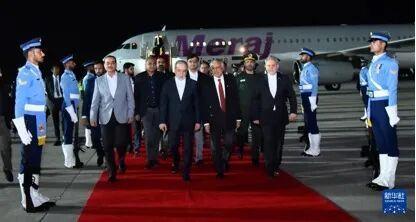 4 月 24 日晚,伊朗外长阿拉格齐(中)率领的代表团抵达巴基斯坦首都伊斯兰堡。巴副总理兼外长达尔、陆军参谋长穆尼尔等高级官员到场迎接图:新华社