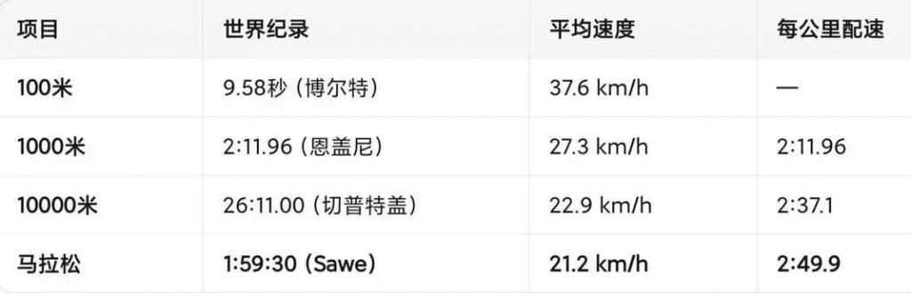 2. " 破二 " 的恐怖之处在于,它意味着选手要以接近万米世界纪录的巡航速度跑完 42.195 公里,平均时速超过 21 公里,甚至比普通人骑自行车还快;这不是单纯的意志奇迹,而是人类耐力极限的一次实质性跃迁。