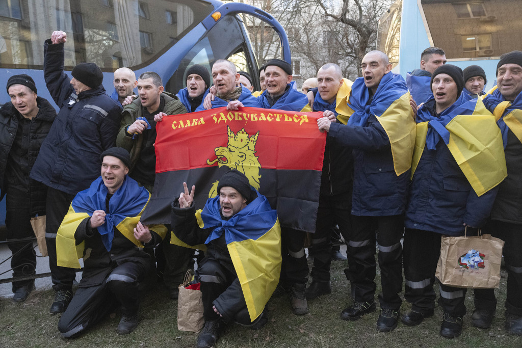 当地时间2025年3月19日,在乌克兰切尔尼戈夫地区,俄乌进行战俘交换,回归的乌克兰战俘合影。