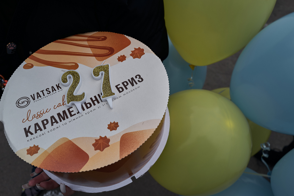 当地时间2025年3月19日,乌克兰切尔尼戈夫地区,乌克兰战俘妻子阿廖娜带着蛋糕给丈夫庆祝生日。