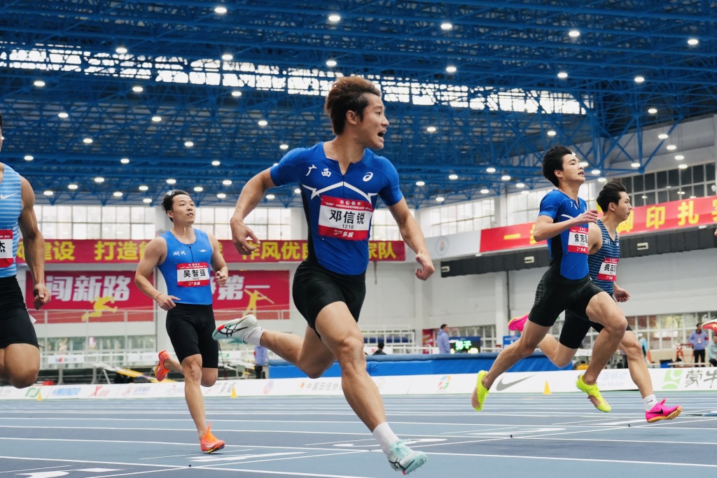 作为亚瑟士的签约运动员,21岁的邓信锐保持着60米赛季国内最好成绩。