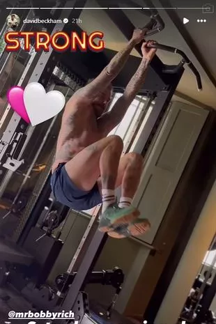 光着膀子的大卫·贝克汉姆在奢华的家庭健身房锻炼,展示着他健美的体格(图片:instagram / @davidbeckham)