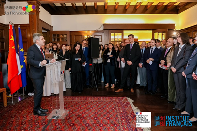 第29届法语活动月上海开幕仪式于3月3日晚在法国驻上海总领事官邸巴赛别墅 (Villa Basset) 举行。法国驻沪总领事王度 (Joan VALADOU)先生、加拿大驻沪总领事Jennie CHEN女士、魁北克政府驻沪办事处主任Michel CONSTANTIN先生、比利时驻沪总领事Pascal BUFFIN先生、卢森堡驻沪总领事Tania BERCHEM女士、瑞士驻上海总领事Sacha BACHMANN先生等重要嘉宾、合作伙伴出席上海开幕仪式。