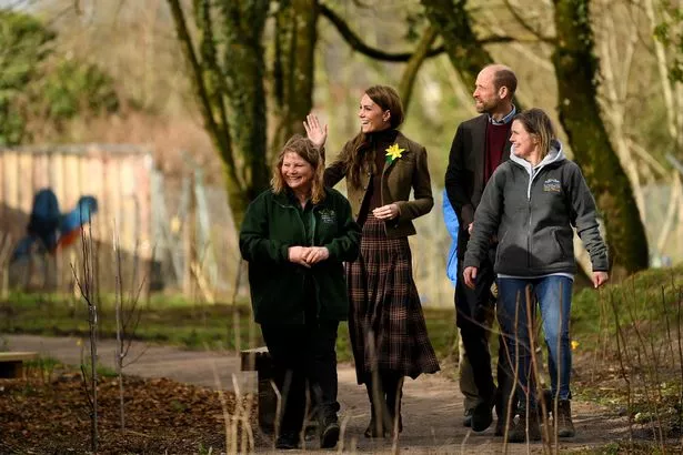 这对夫妇参观了Pontypridd的Meadow Street社区花园和林地(图片来源:POOL/AFP / Getty Images)