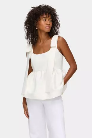 如果你不想穿裙子,或者正在为民事仪式或更低调的活动寻找衣服,align有Alina蝴蝶结缎面上衣。这件漂亮的婚纱售价115英镑,剪裁考究,既优雅又现代。它可以搭配白色长裤参加婚礼,也可以搭配牛仔裤参加更休闲的婚前活动,比如在家里举行的订婚派对庆祝活动,它同样是蜜月造型的理想选择。