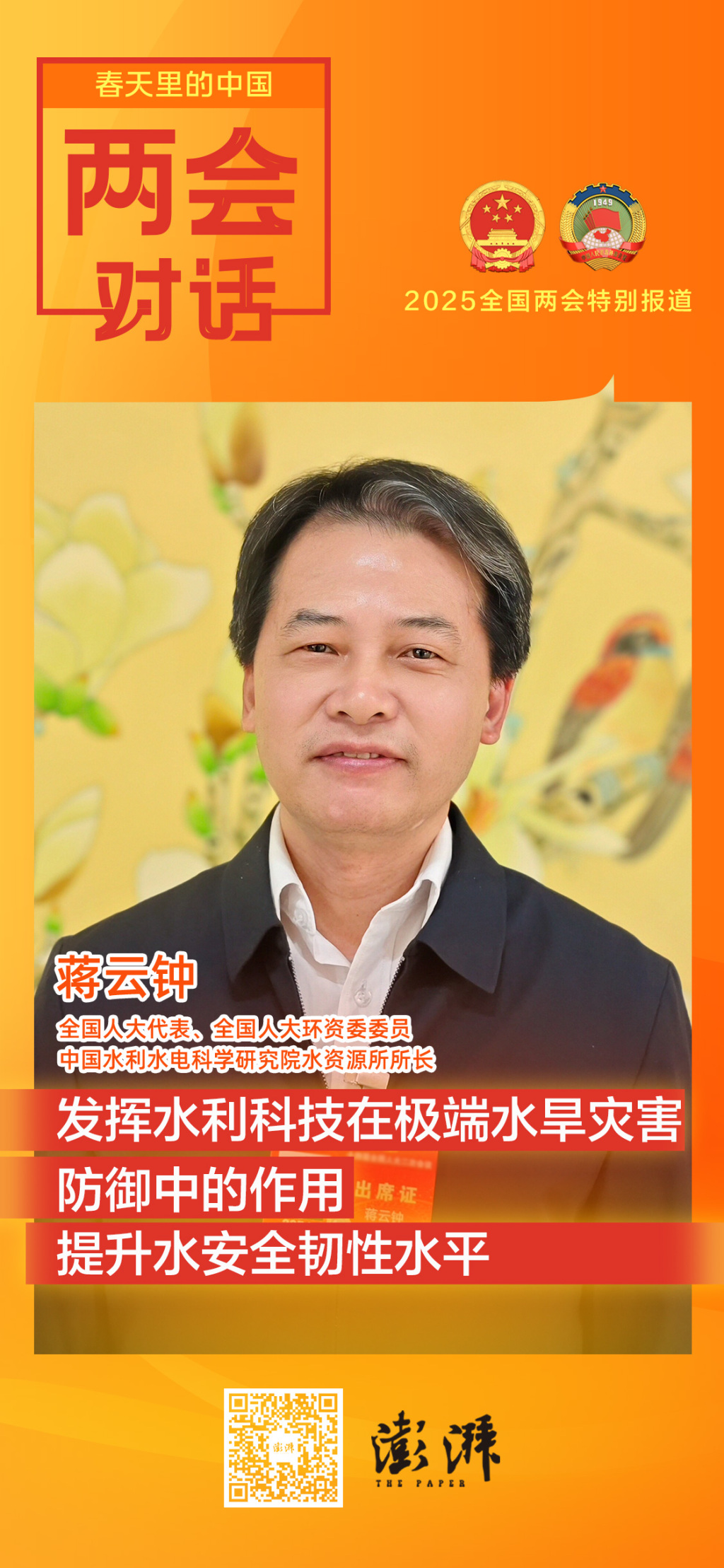 专访|蒋云钟代表:发挥水利科技在极端水旱灾害防御中的作用,提升水安全韧性水平