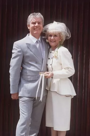 杰弗里·欣斯利夫最出名的角色是在《加冕街》中饰演唐·布伦南,图为他和银幕上的妻子艾薇·蒂尔斯利(林恩·佩里)。