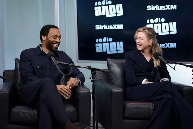 蕾妮·齐薇格正在接受切瓦特·埃加福的采访,切瓦特·埃加福在新片《为男孩疯狂》中饰演沃利克先生(图片:Getty Images for SiriusXM)