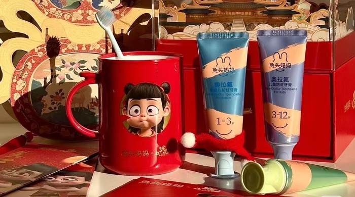 儿童洗护品牌兔头妈妈就是其中之一,它也是《哪吒2》一系列联名品牌中唯一的日化品牌。在《哪吒2》还未上映的1月初,兔头妈妈就在新品发布会上官宣了与哪吒IP的联名,并计划与楼宇广告商分众传媒合作,加大广告投放力度,集中资源打爆新品“高纯奥拉氟儿童防蛀牙膏”。