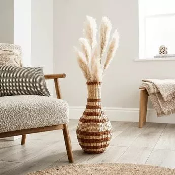 商店编织棕色条纹稻草花瓶从Dunelm