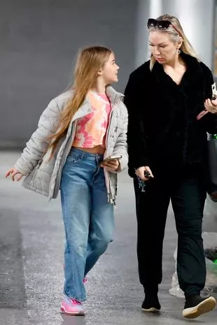 这位47岁的前《舞动奇迹》专业舞蹈演员身穿黑色毛绒绒外套、黑色慢跑裤和长裤,看上去陷入了沉思。她头上戴着心形耳坠和深色太阳镜。克里斯汀娜手里拿着一个iPad,上面有一个粉红色的外壳,胳膊上挂着一个包。