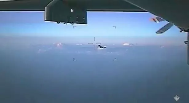 这是一个令人毛骨悚然的时刻,一架“咄咄逼人”的俄罗斯战斗机在地中海上空危险地接近一架北约成员国的无人机。