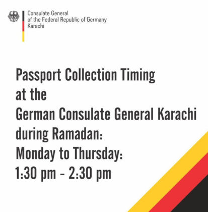 德国驻卡拉奇领事馆宣布修改了斋月期间的护照领取时间。