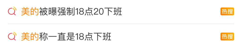 “美的被曝强制18点20下班”冲上热搜。